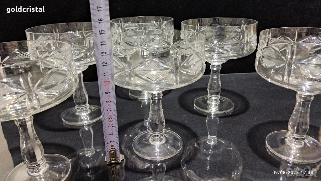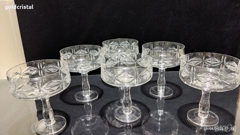 кристални чаши български кристал ръчно гравирани масивни и тежки неизползвани кристално стъкло сервиз комплект сет лот ретро арт декор винтидж колекция стари старинни антикварни предмети обзавеждане за дома и семейството подходящи за подарък за ценители и колекционери чаши на столче кристално стъкло за вино шампанско десерт сладолед мелби крем декорация подарък празник дома съдове посуда кухня готвене сервиране хранене гости трапезария маса празници сватба годеж юбилей