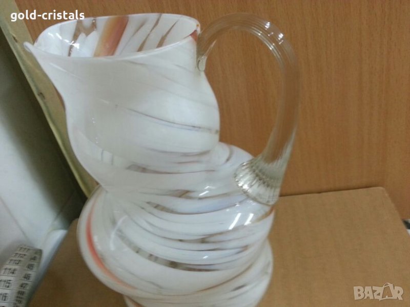 Ретро стъклена кана кристално стъкло ръчна изработка без забележки ретро арт декор винтидж колекция за вода сок вино и др стари антикварни предмети обзавеждане за дома и семейството подходящи за подарък за ценители и колекционери 6 бр халби за вино и бира 240лв