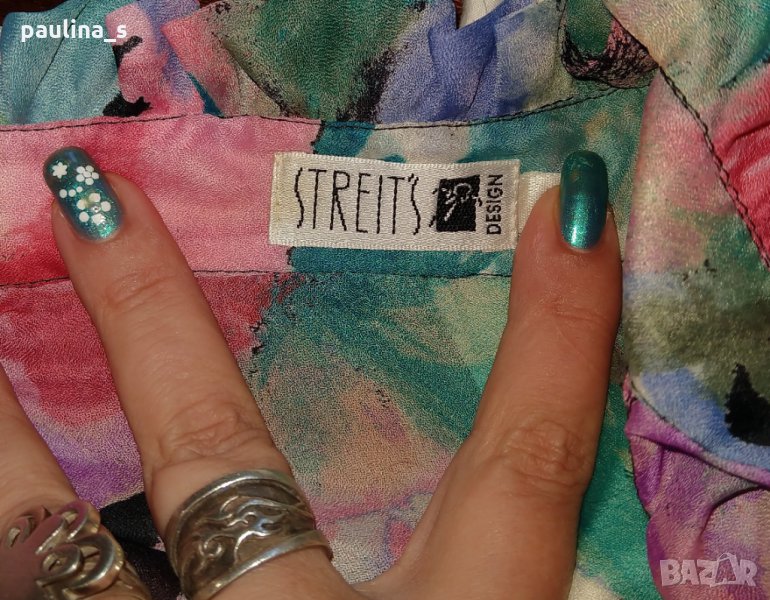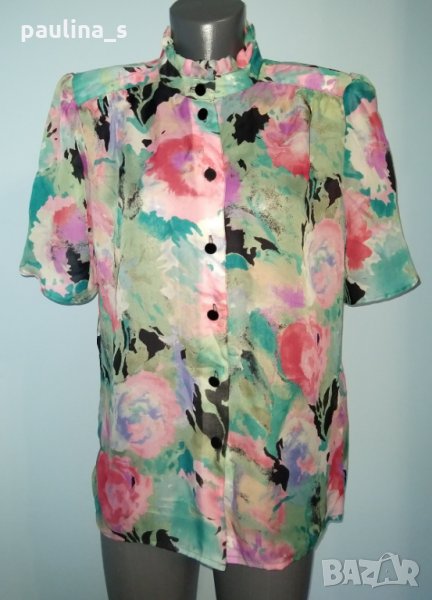 1. L / XL / "Streets". Лятна дамска ризка с разчупен ръкави и високо закопчаване. Материята е ефирна органза, не мачкаема. Подходяща е за офис или повод.