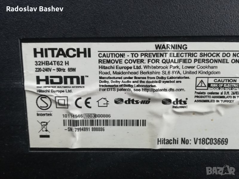 Hitachi 32HB4T62H 32" Full HD WiFi Smart LED TV-ЗА ЧАСТИ!, снимка 1 - Части и Платки - 25863062  Hitachi 32HB4T62H 32" Full HD WiFi Smart LED TV-ЗА ЧАСТИ!, снимка 2 - Части и Платки - 25863062  Hitachi 32HB4T62H 32" Full HD WiFi Smart LED TV-ЗА ЧАСТИ!, снимка 3 - Части и Платки - 25863062  Hitachi 32HB4T62H 32" Full HD WiFi Smart LED TV-ЗА ЧАСТИ!, снимка 4 - Части и Платки - 25863062  Hitachi 32HB4T62H 32" Full HD WiFi Smart LED TV-ЗА ЧАСТИ!, снимка 5 - Части и Платки - 25863062  Hitachi 32HB4T62H 32" Full HD WiFi Smart LED TV-ЗА ЧАСТИ!, снимка 6 - Части и Платки - 25863062  Hitachi 32HB4T62H 32" Full HD WiFi Smart LED TV-ЗА ЧАСТИ!, снимка 7 - Части и Платки - 25863062  Hitachi 32HB4T62H 32" Full HD WiFi Smart LED TV-ЗА ЧАСТИ!, снимка 8 - Части и Платки - 25863062  Hitachi 32HB4T62H 32" Full HD WiFi Smart LED TV-ЗА ЧАСТИ!, снимка 9 - Части и Платки - 25863062  Hitachi 32HB4T62H 32" Full HD WiFi Smart LED TV-ЗА ЧАСТИ!, снимка 10 - Части и Платки - 25863062  Hitachi 32HB4T62H 32" Full HD WiFi Smart LED TV-ЗА ЧАСТИ!, снимка 11 - Части и Платки - 25863062  Hitachi 32HB4T62H 32" Full HD WiFi Smart LED TV-ЗА ЧАСТИ!, снимка 12 - Части и Платки - 25863062  Hitachi 32HB4T62H 32" Full HD WiFi Smart LED TV-ЗА ЧАСТИ!, снимка 13 - Части и Платки - 25863062 1/13