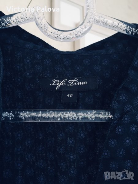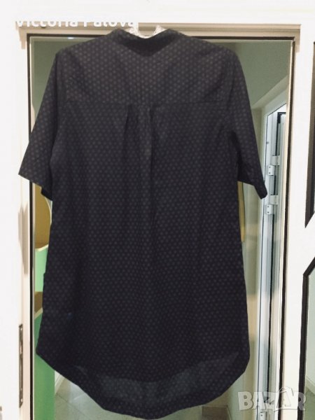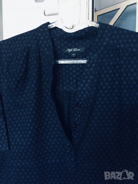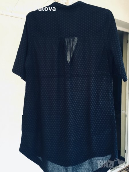 Красива тъмно-синя с лилави звездички туника,много красиви детайли,джобове,отзад е по-дълга,на ръкава с илици,хубава удобна кройка ,лека е буквално няколко грама. ГО-55-56см,дълга отпред-84см,отзад-94см