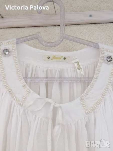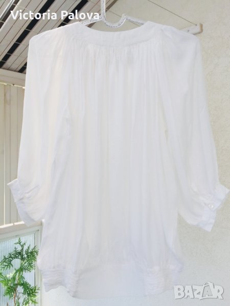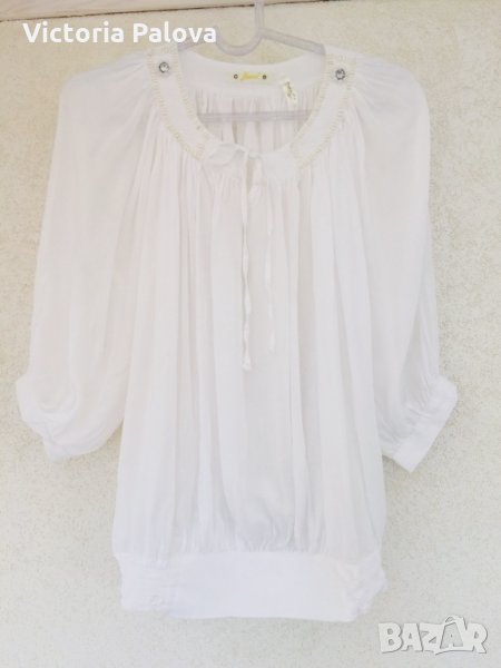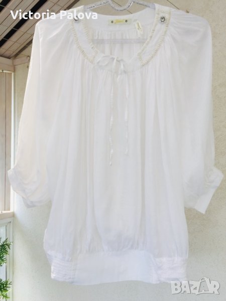 Много нежна тънка и красива блуза,набрана е навсякъде,много плат,но тъй като материята е много тънка -получават се красиви фалди.особенно красиво блузата ще стои с тесен панталон или пола.
