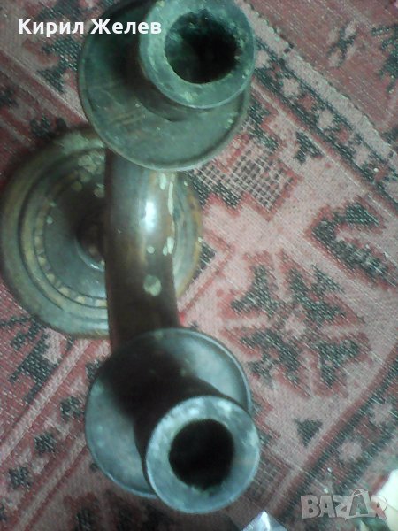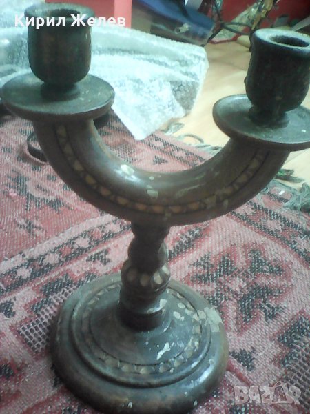 Старо дървено свешниче красиво здраво високое 22 см цялото в шарки ръчна работа