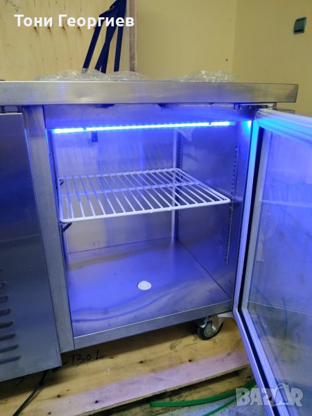 Машината е с два компресора на Panasonic - единия за изстудяващата плоча, а другия за хладилната част, комплект рамки със стъклен стилаж (поставя се при желание), комплект резервни платки за двата електронни пулта, педал за размразяване и комплект шпатоли. Параметрите на машината можете да видите на една от снимките.
