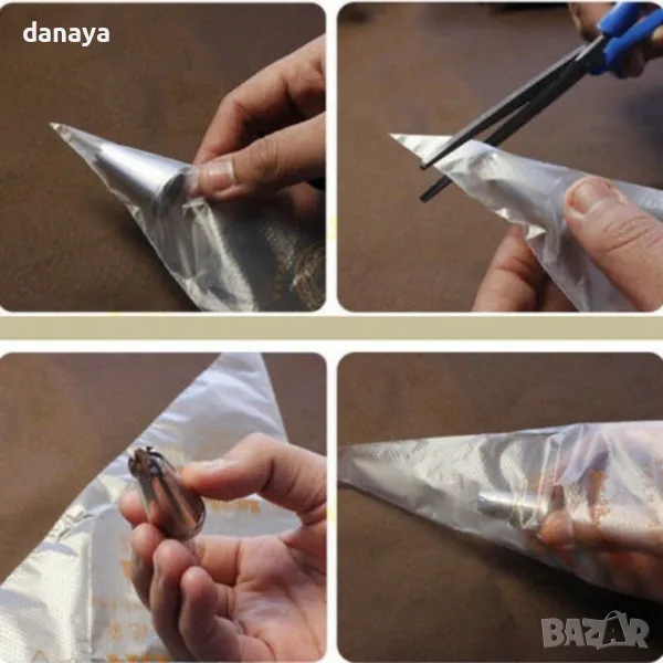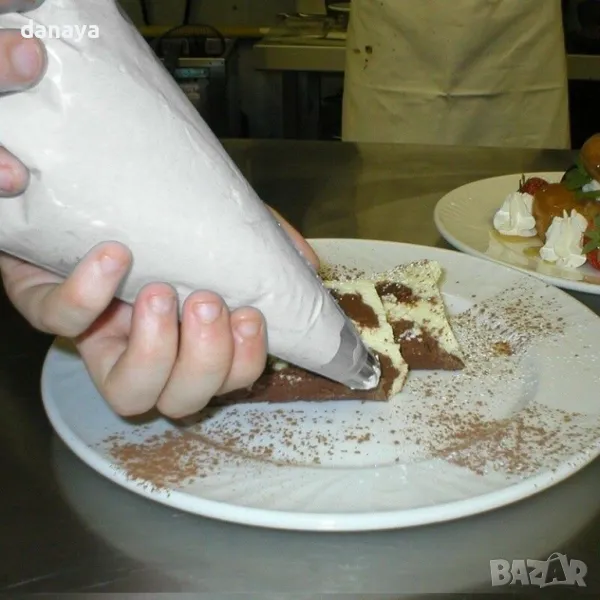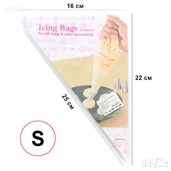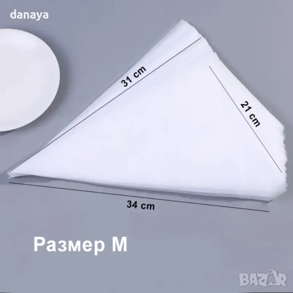 Комплект от 100 броя сладкарски пош торбички за еднократна употреба. Торбички за пош, идеални за декорация на торти и сладкиши. Могат да е използват със или без съединител. Повърхността им е нехлъзгаща и са лесни за работа със сметана и всякакви кремове. Предлагат се в 3 размера - S, M и L.