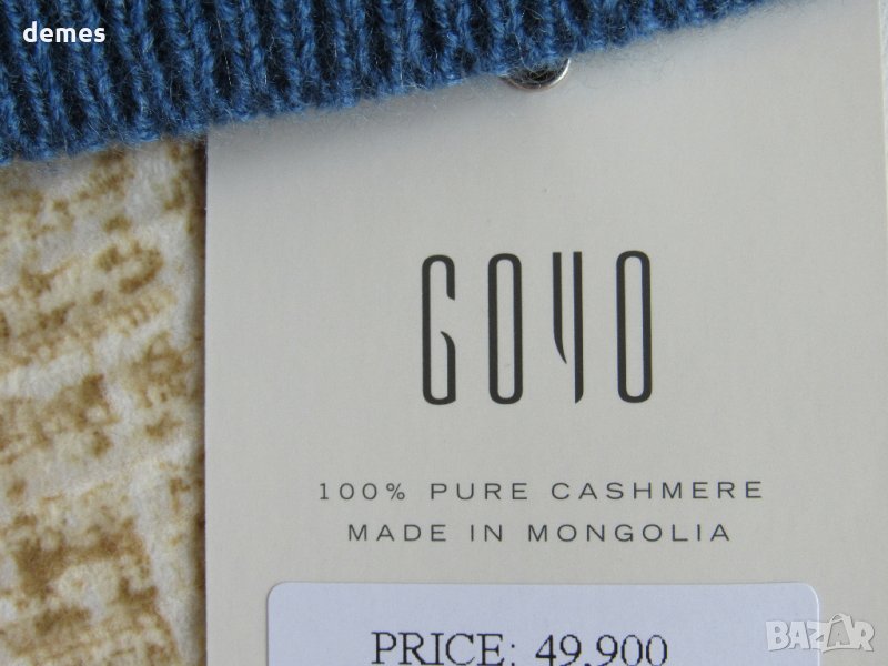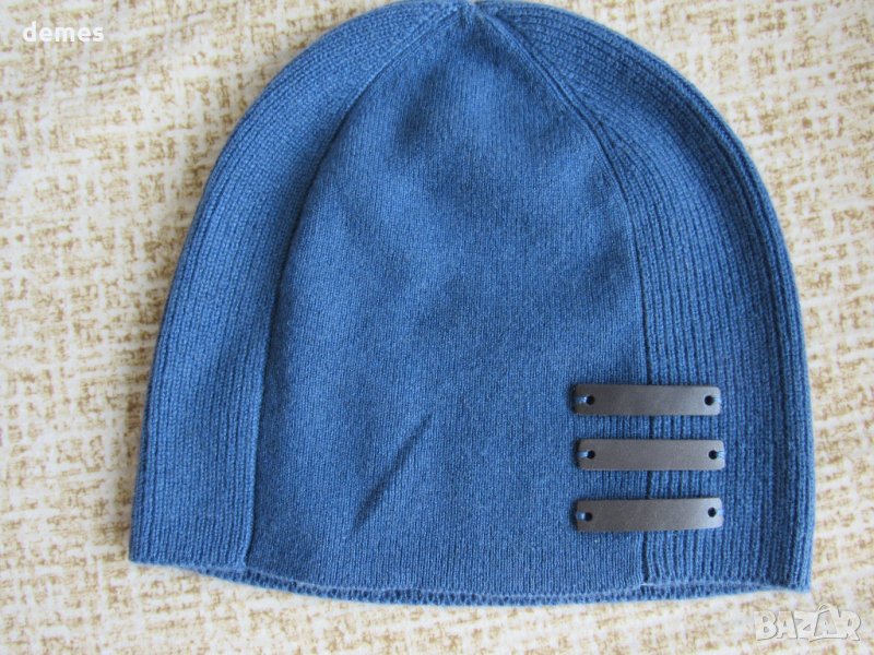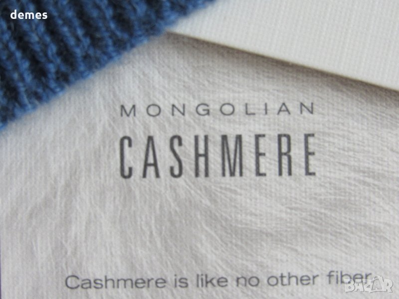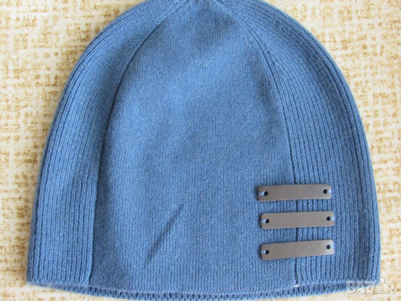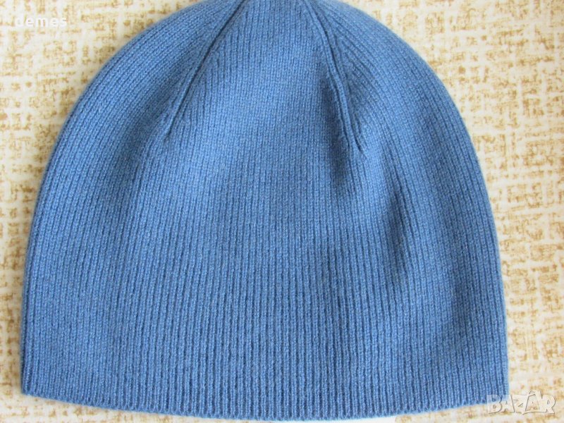 Синя мъжка машинно плетена шапка, 100% кашмир, Монголия → Обява 25908226