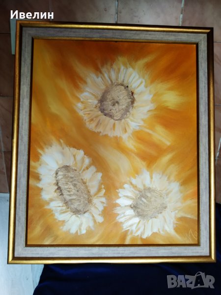 картина-цветя.масло на шперплат с размери 45см/37см,в рамка с размери 54см/45см.