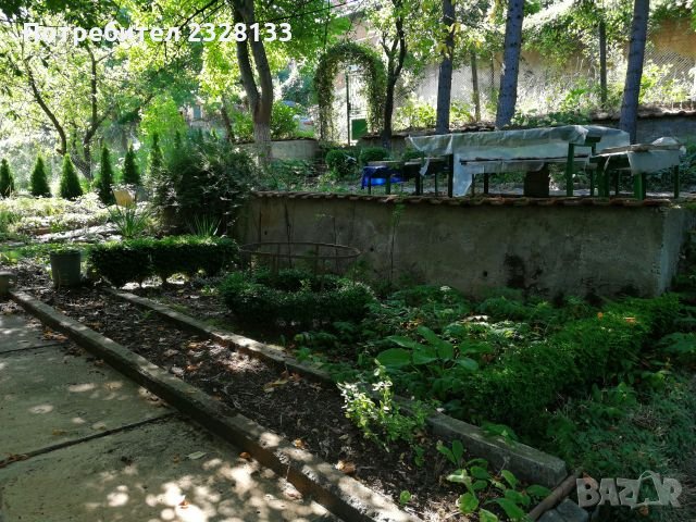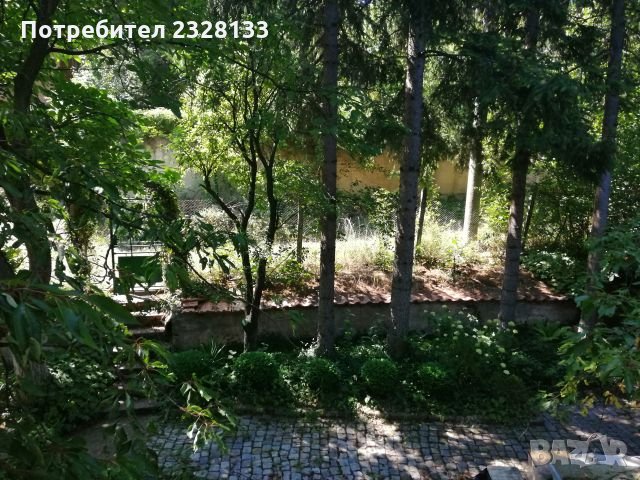 Страхотен двор, облагороден, с много красиви кътчета, рози, вечно зелени декоративни растения, борове, овощна градина – 2 ореха, 4 черши, 3 ябълки, сливи, вишна, дюла, круша, липа. Ограден с мрежа, жив плет и много туи. Терасиран – три тераси с четири подпорни бетонни укрепващи стени под и над къщата. В двора има хубаво обитаемо бунгало, стопанска постройка, външна тоалетна. Има сонда за вода, две септични ями. Наоколо целогодишно обитаеми вили.