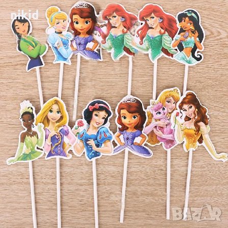 12 Принцеси горна част картонени топер топери клечки за декорация на мъфини кексчета и торта парти → Обява 25934224