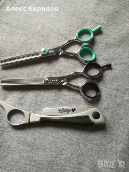 Комплекта влючва 2филажни ножици,1 бръснач и 2 гребена.Два пъти съм го ползвала,почти е нов.