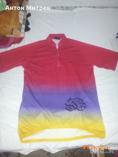 Продавам Лот 2 от запазени велотениски - всяка по 5 EU, общо тениските са ми около 7 броя, но понеже имам по 3 снимки на всяка тениска, не мога да ги събера в 1 обява, затова ще ги дам в 2 обяви една след друга. Размерът на всяка тениска го има на снимката, за да няма недоразумения. Относно фланелката, с надпис отпред "HallBerg Bolid" размерите са следните в сантиметри: от мишница до мишница - 50 см., от яка до долен подгъв отпред - 54 см., от яка до долен подгъв отзад - 67 см.