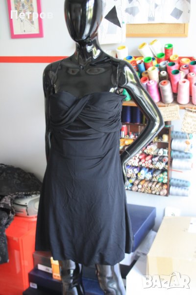 Роклята е нова, с етикет. С голи рамене тип бюстие, дължина над коляното. Материя: 95% вискоза, 5% еластан. Цвят: черен