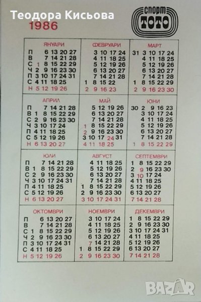 Джобно календарче на Спорт Тото 1986