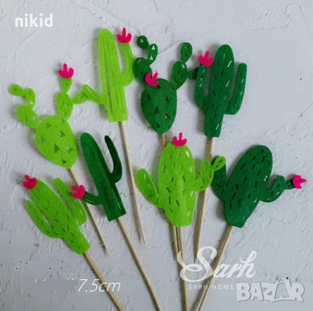 8 бр Кактус филц топер клечки украса декор за торта мъфини парти → Обява 25965961