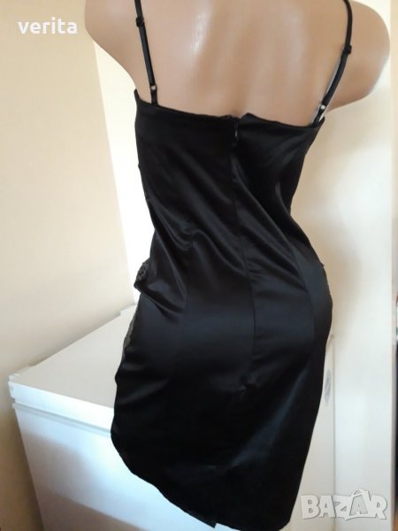 Официална черна рокля от еластичен сатен, стои много елегантно.