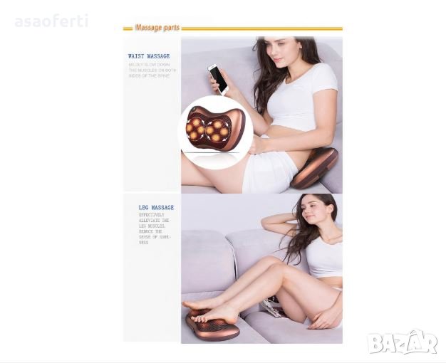 Масажираща възглавничка за 8 точков шиацу масаж
