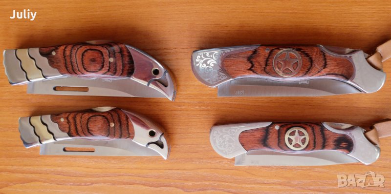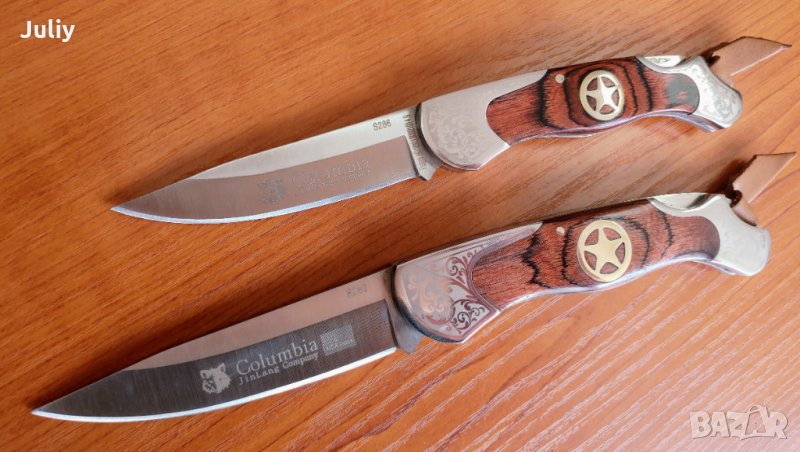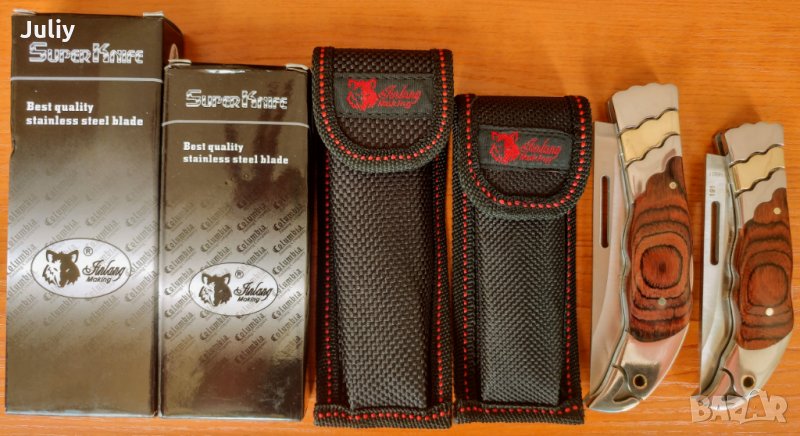 Ножчетата са окомплектовани с калъф за носене на колана и картонена опаковка.