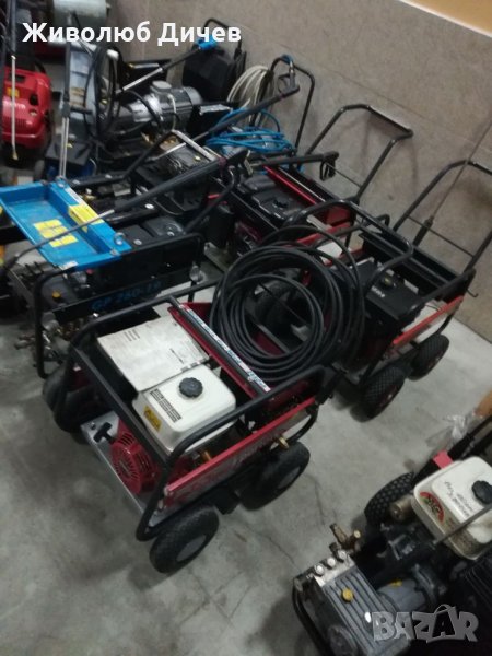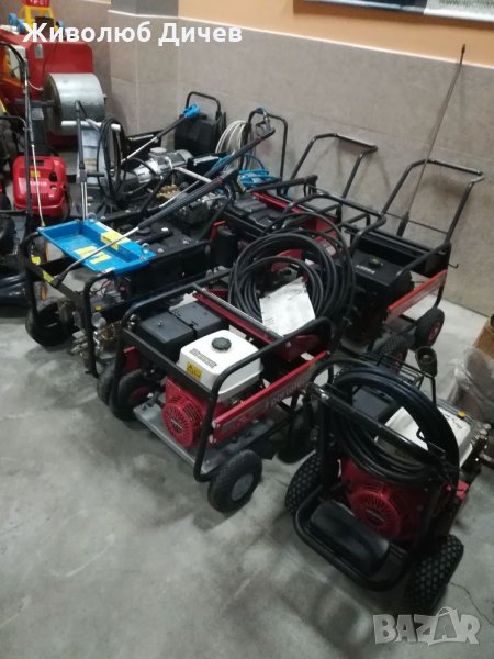 Бензинова водоструйка с Interpump помпа,с колянов вал и керамични бутала. Бензинов двигател 9 к.с. ,300 куб.см. ,дебит 15 литра в минута, налягане 170 бара. Налични два броя едната е 140 бара 1600 лв, другата 170 бара -2000 лева . Отремонтирани с гаранция .Подходящи за места където няма ток , захранването с вода става от бидон или резервоар. Налични 5 броя.