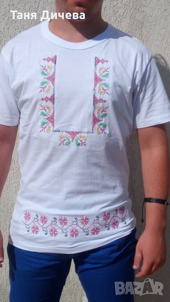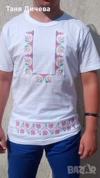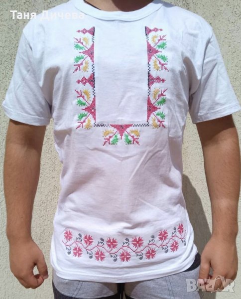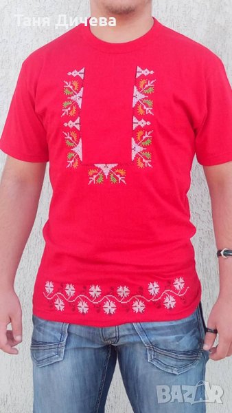 Мъжка блуза с везана народна шевица в три цвята бяло, черно и червено За количество отстъпка
