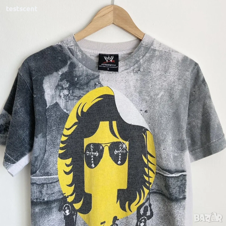 Тениската е с впечатляващ цялостен принт и отличителна визия – типичен стил за WWE и wrestling сцената от края на 2000-те.