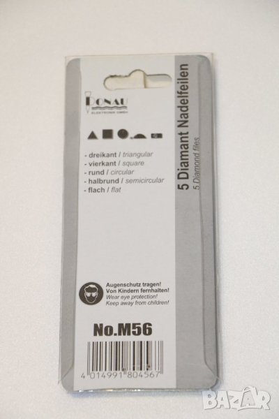 диамантени микро пили 5 бр., Германия. Високо качество. Предназначени за твърди материали като стомана, стъкло, керамика и др. По вид са плоска, кръгла, полу-кръгла, триъгълна и квадратна. Дължината е 100 мм.