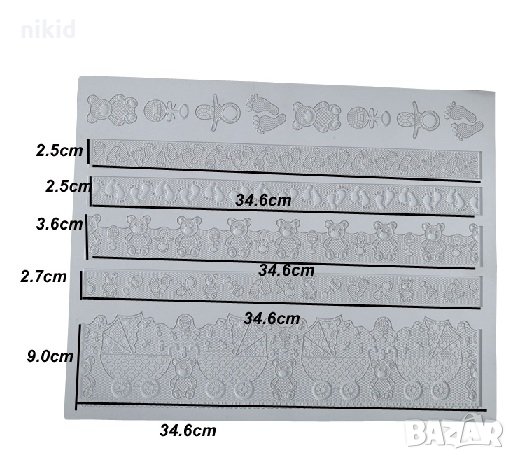Грамадна Комбинирана Бебешка дантела силиконов молд борд кант за украса торта с гъмпейст → Обява 25988265