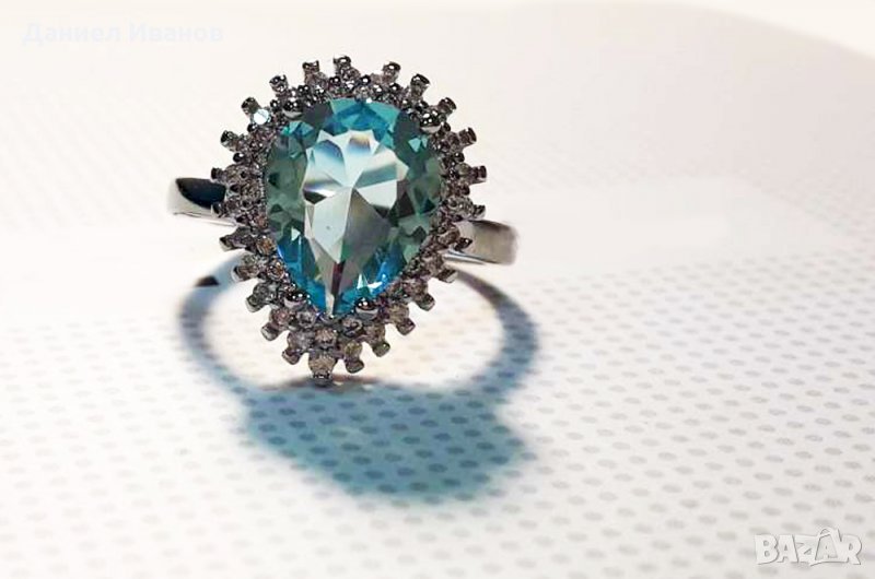 Продавам нов уникален сребърен пръстен проба 925 със камък "Аквамарин " . Размер - 8 !