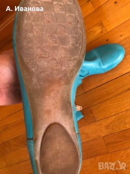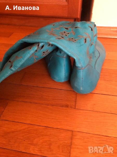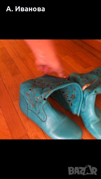 Дамски ботуши от мека естествена кожа в тюркоазен цвят