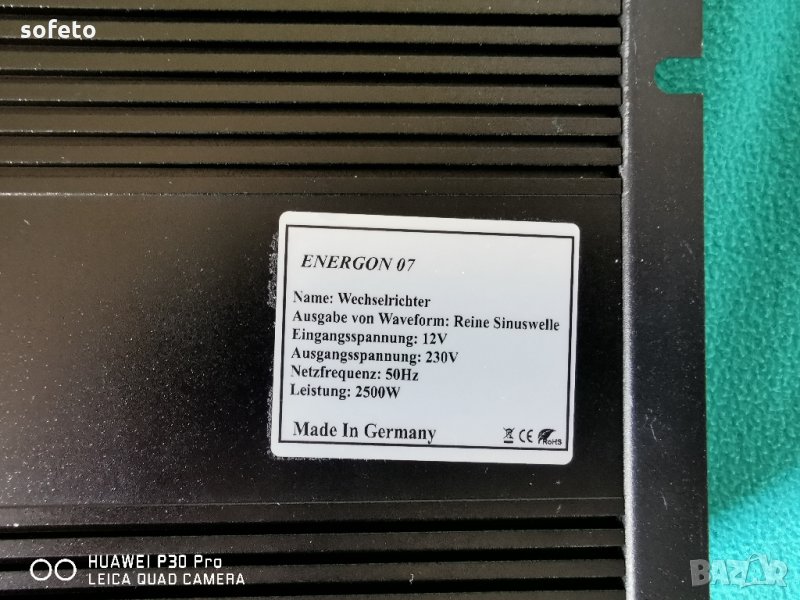Инвертора е изключително масивен и здрав ТЕЖИ 5КГ !!! Лично съм тествал такъв . Постоянна мощност 2500 вата и пикова 5000 вата.