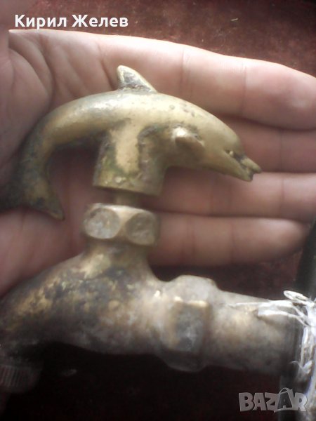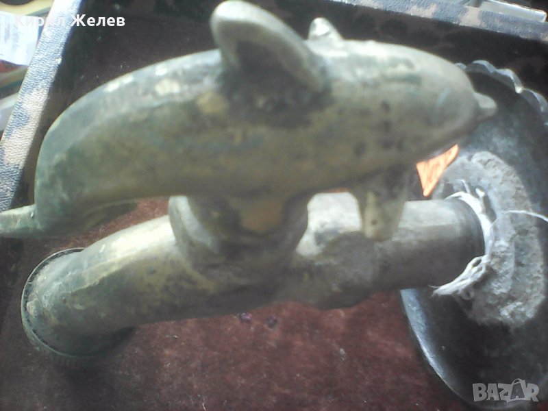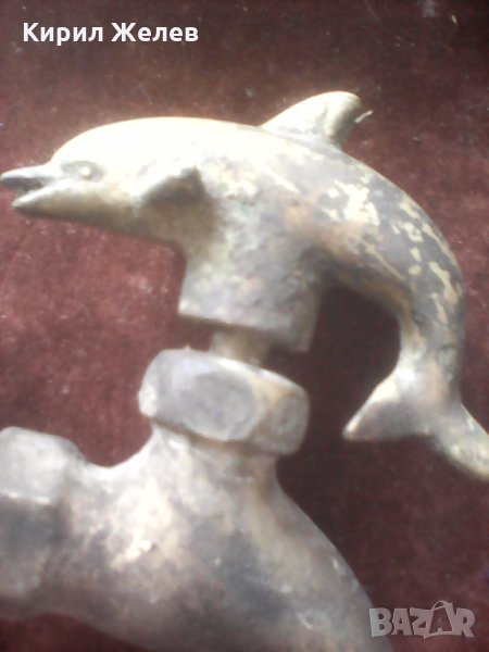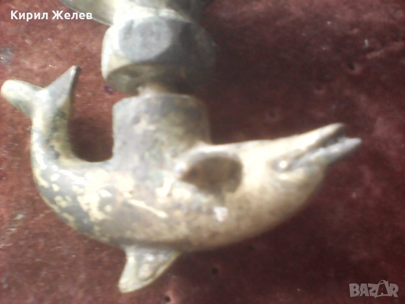 Старо бронзово кранче с делфинче голямо красиво плътно здраво за колекция