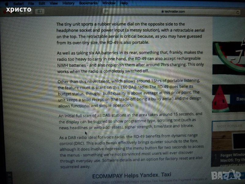 Перфектен вид,като ново.Внос от Англия.Цената му при излизане на пазара е 60 паунда.Има FM,DAB и фунция зареждане на акумулаторни батерии.Много добър звук.Има дефект.При включване не зарежда напълно и застива на положение от последната снимка.Цената е крайна.Без бартери.