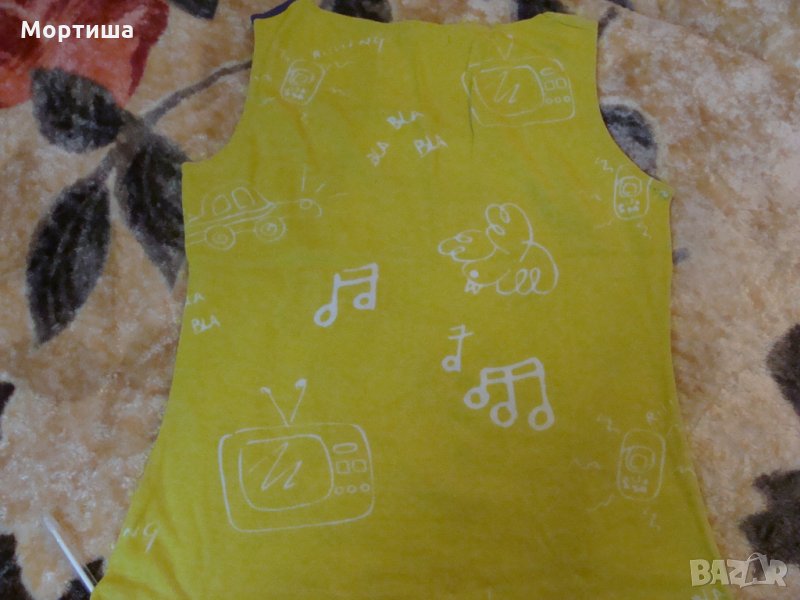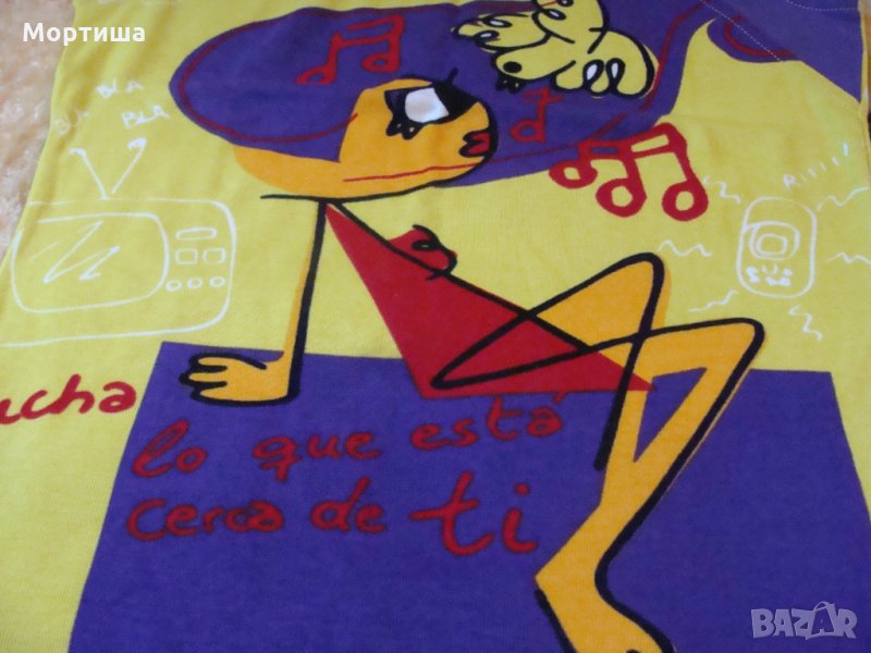 Потника е 100% оригинал на луксозната испанска марка Нов без етикет .100% памук основни цветове лилаво жълто резида С трахотни закачливи декораций и деколте По етикет ХЛ ( но е умален ) Дължина 60 см мишници 44 см рамена 35 см има разтегливост Цветовете са по наситени отколкото на снимките Крайна цена без бартери