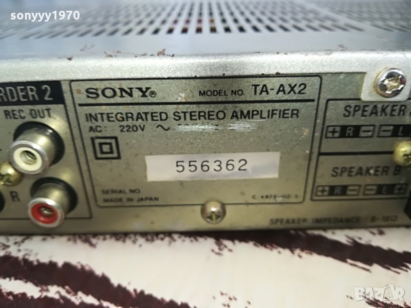 sony ta-ax2 стар истински и здрав-има забележки по капака-лицево е ок-изходи за 4 колони-пращаме със спиди или еконт с преглед и тест след превод на капаро за куриерската услуга поради зачестили некоректни потребители-поръчки само тук в саита! по телефона и със смс не! краини цени! бартери не правиме! ПАРИ НЕ ВРЪЩАМЕ! всеки ден нови неща-още 2-3 наши обяви тук