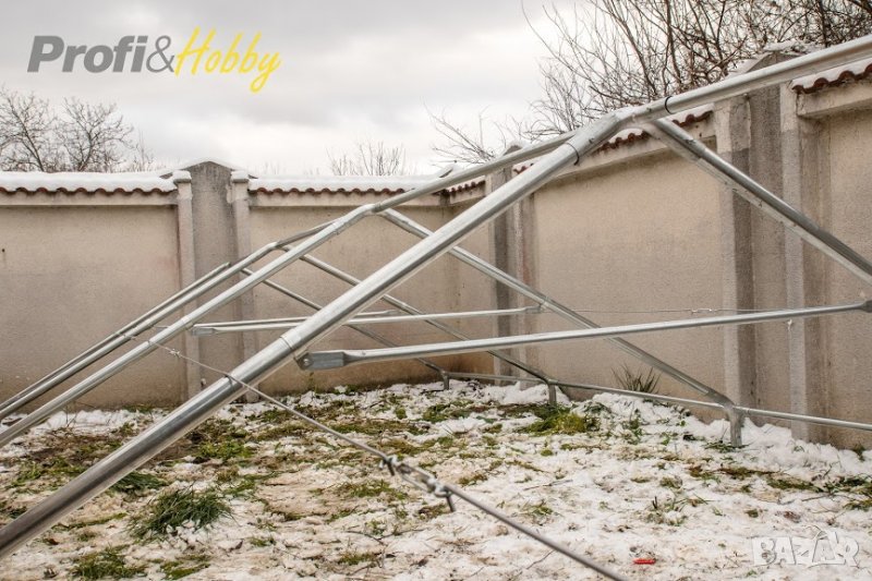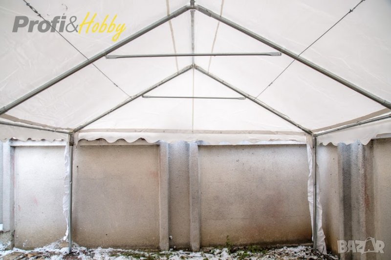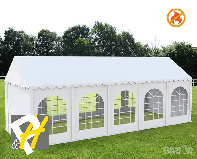 Професионална шатра 4х10м, огнеустойчив PVC брезент 550 гр/м2 – подсилена