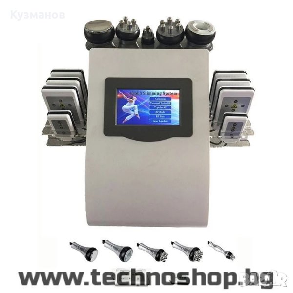 Апарат за кавитация, липолазер, вакуум терапия и радиочестотен лифтинг.Комбиниран козметичен уред за вакуум терапия, липолазер, кавитация и радиочестотен лифтинг.