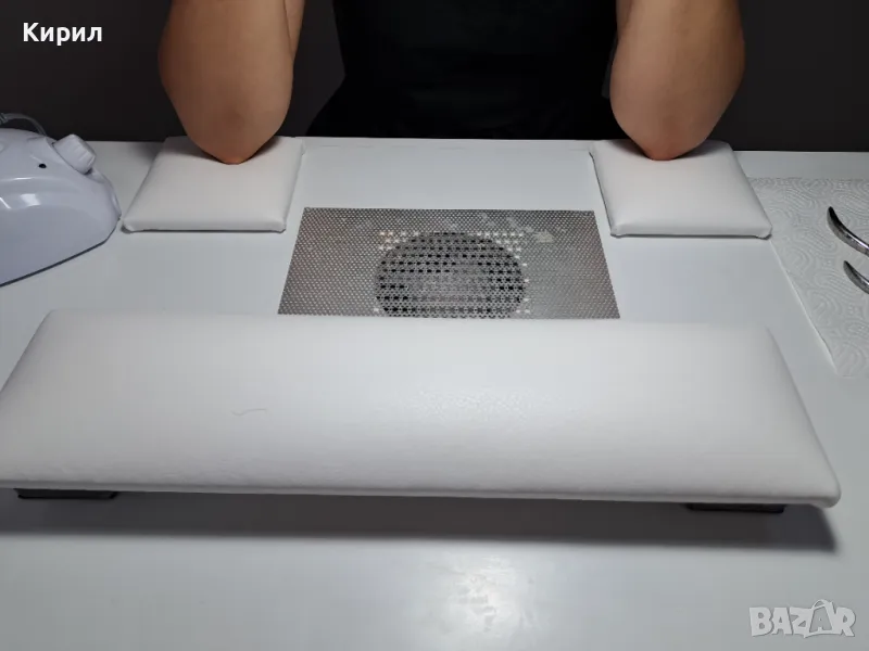 Поставка за маникюр.Размерите и са дължина 30 см,ширина 15 см,височина 12 см на поставката.Може да се изработи в бял,черен ,лилав,бежов ,кафяв ,последните две снимки са с възглавнички за под лакета.