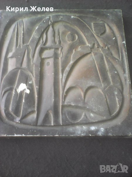 Медна стара картина зграфа кули високае 19 см широкае 19 см красива здрава