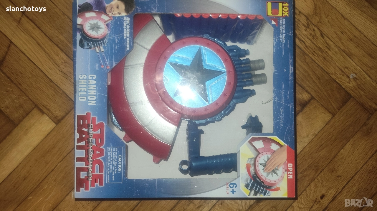 Само щит на Капитан Америка,31 с,не свети,не издава звуци.-14.90. Има го и с маска към него-17,50...Изпращам с Еконт или лично за Сф. Имам го и с автоматично изстрелване на стрели-59,90л. Последните 3 снимки.