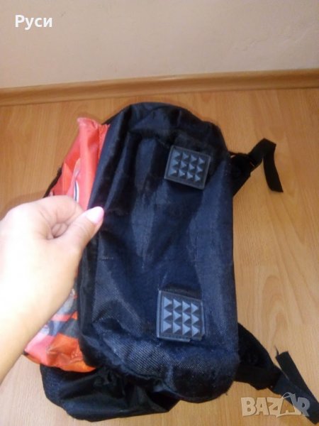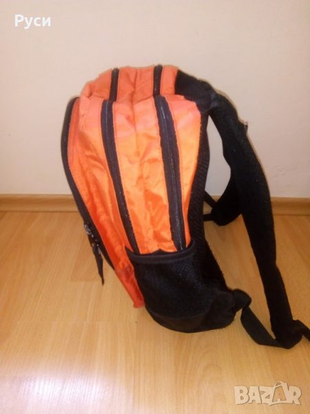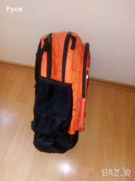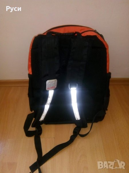 Ученическа раница с леки следи от употреба. Омекотен анатомичен гръб и широки презрамки. Две големи прегради, преден голям джоб и малък с ципове. Странични джобове от двете страни, подходящи за шише с вода. Само пластмасата на дръжката се е напукала, но не пречи да се ползва. Има светлоотразителна лента на джоба и на празрамките. Отдолу е с пластмасови здрави крачета. Подходяща за ученици от 1-ви до 4-ти клас.