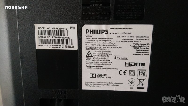 SMART Телевизор Philips 32PFK5300/12 със счупена матрица на части