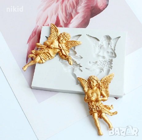 2 големи ангела с цигулка и сърце силиконов молд форма декорация торта фондан пита → Обява 26081380