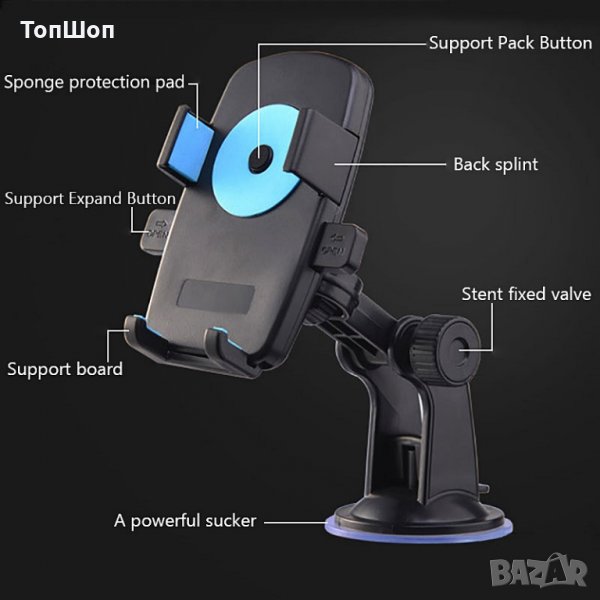 Стойка за мобилен телефон Holder за кола , автомобил универсален за всички телефони предимството е ,че има 2 държача с които телефона ви може да седи и в Вертикална и Хоризонтална страна.