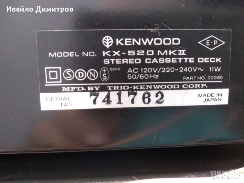 Kenwood KX-520 MKII дек Размери: 380 x 288 x 140mm.