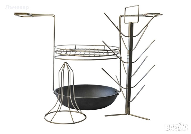 5. Комплект "4 в 1" (втулка за птици, елха, чугунена тава, двуредна мрежа)