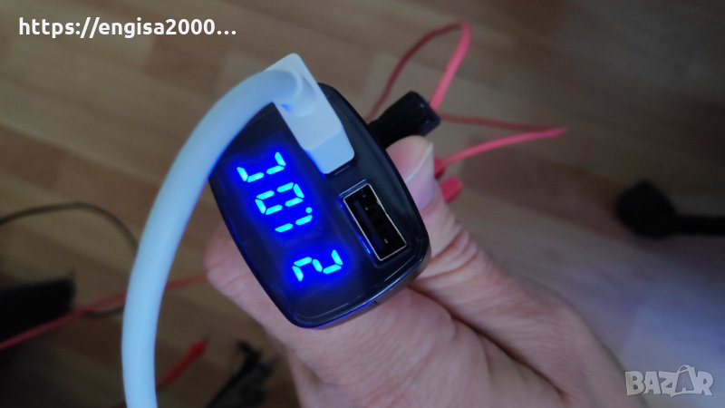 ПРОМО! Зарядно за кола с 2 USB гнезда с цифров волтметър, амперметър, термометър