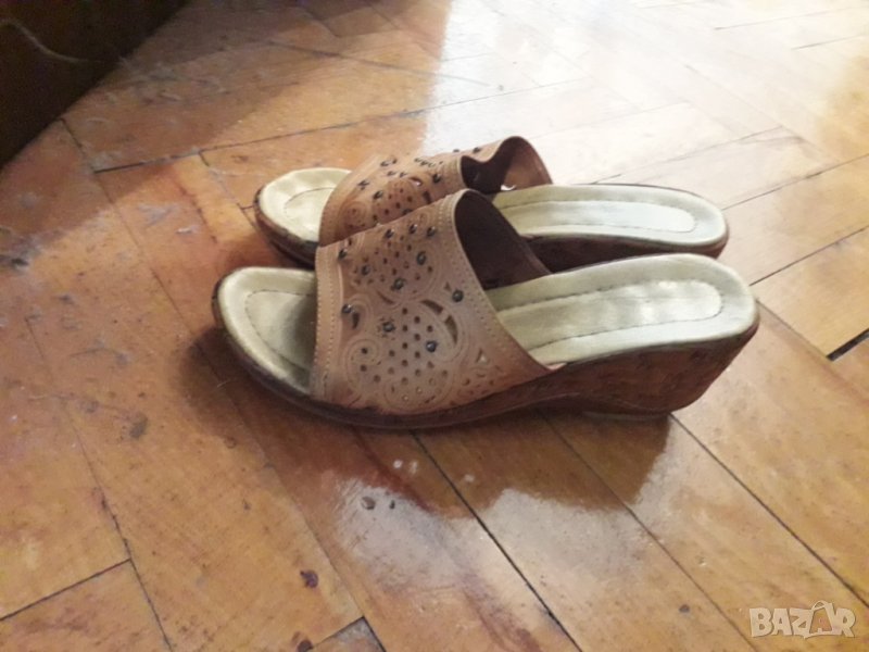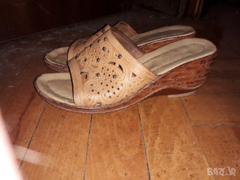 Дамски кожени чехли с удобна платформа, размер 38 българска номерация. Отговарям на съобщения тук, изпращам с куриер с отстъпка, преглед и тест, или лично предаване в София.