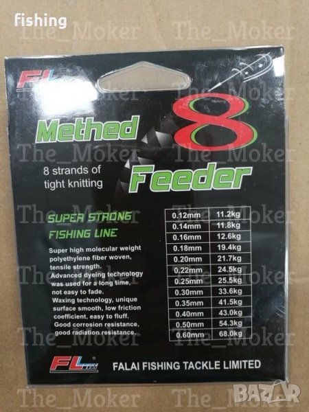 фидер и метод фидер риболов. FL Method Feeder е с трислойна структура, състояща се от вътрешна керамична сърцевина, устойчив на абразия слой и външно силиконово покритие. Влакното е паралелно навито и се предлага с диаметри с точност до хилядна от милиметъра. Всички тези характеристики в допълнение с невероятната устойчивост на абразия и якост на възел, правят това влакно отличен избор за всички любители на фидер риболова.