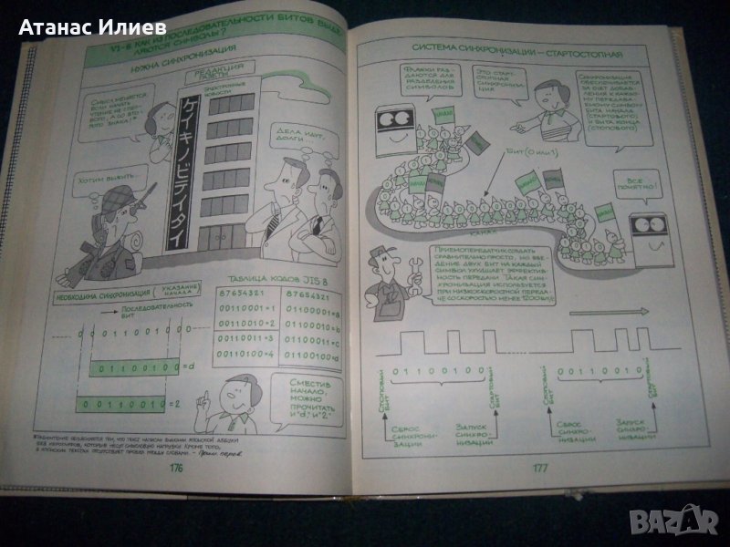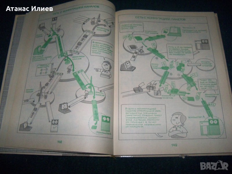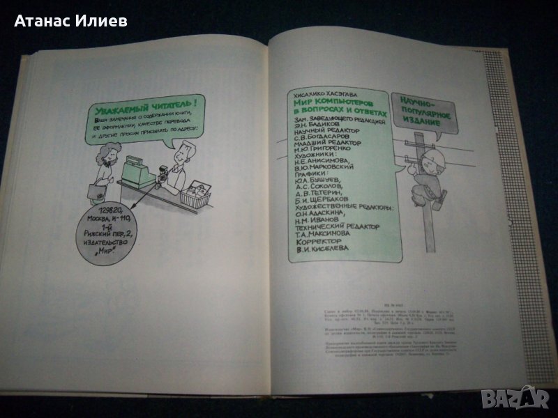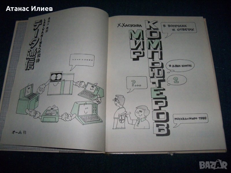 "Мир компьютров в вопросах и ответах" част 2-ра. "Светът на компютрите във въпроси и отговори". Книгата е първо издание от 1988г. на издателство "Мир", превод на руски от първото японско издание издание от 1986г. Книгата е в две части. Това е втората книга предназначена да запознае децата с компютърните мрежи, автоматизацията и сигурността. Книгата е разработена от японския специалист Х. Хасегава на достъпен за децата език, като е направена в стила на японските комикси манга. Колекционерите считат тази книга за първата книга издавана на руски в този стил и я ценят като символна на японската поп манга култура. Книгата е с твърди корици, 150стр. в много-добро състояние. Налична е и първата част - виж другата обява.