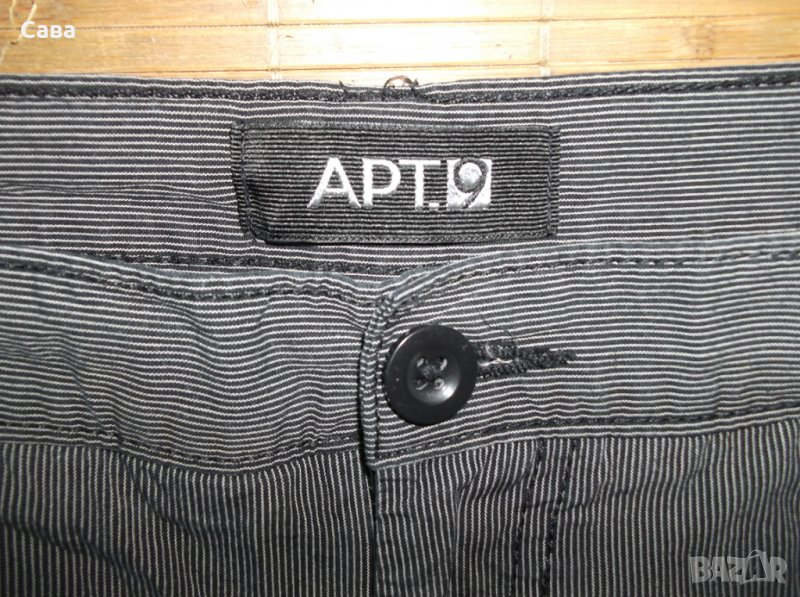4 Апт.9, сиво- черно райе, талия в закопчано състояние- 45см, дължина- 49см.