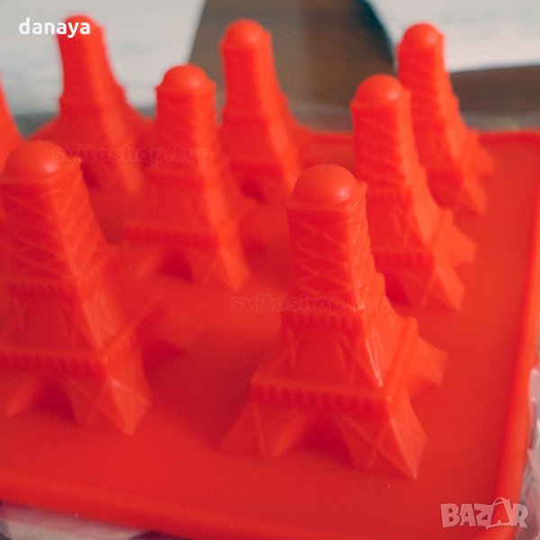 Силиконова форма за шоколадови бонбони Айфелова кула. Формата има 9 гнезда. Идеална за работа с шоколад, декорация и украса на торти, десерти, сладкиши.